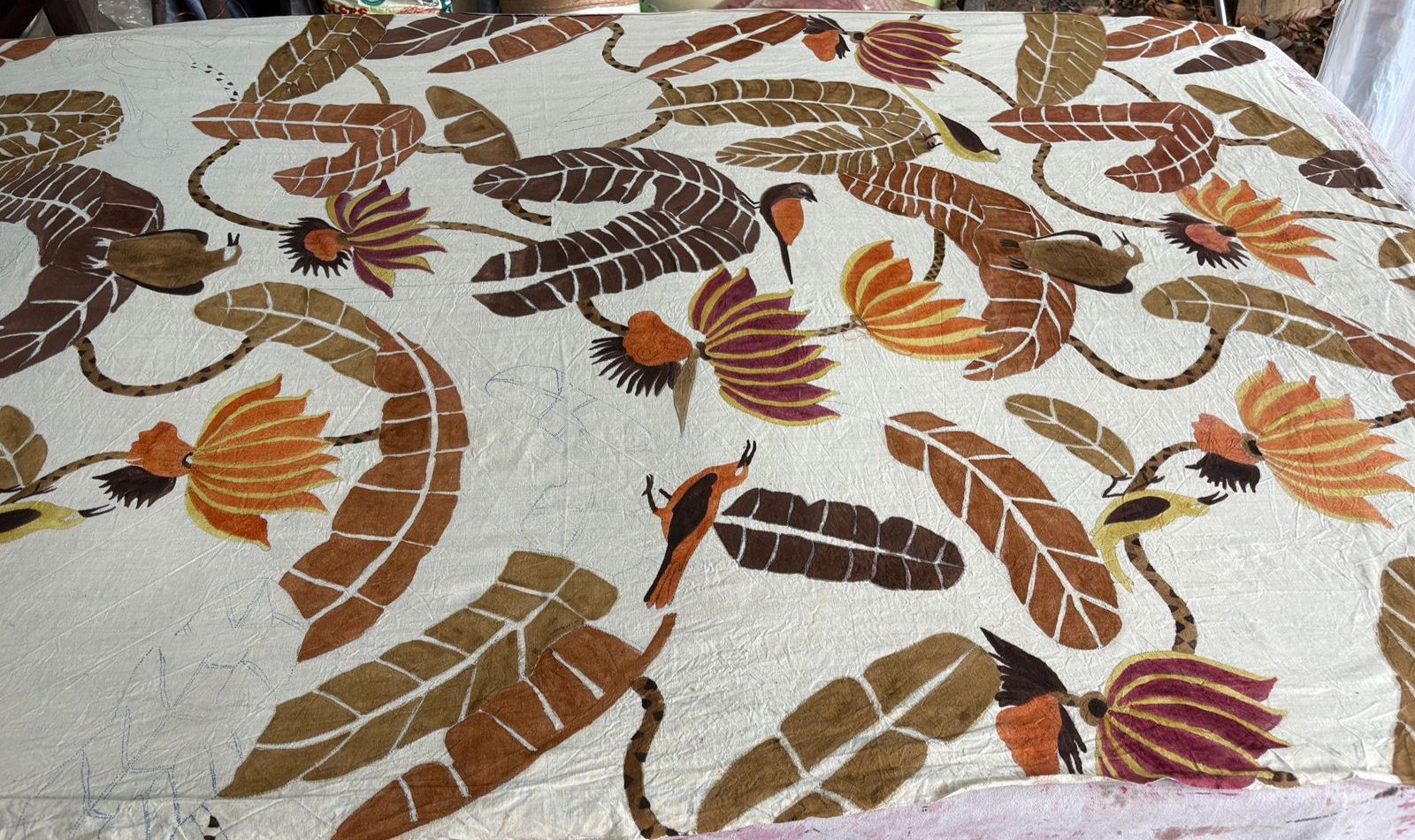 Each piece is slow-made, often taking weeks to complete, as the fabric undergoes multiple steps of washing, dyeing, sketching, and painting. The result is more than just fabric – it is a living canvas, a heritage preserved in threads and colors.